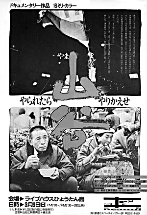 この映画は、1984年12月22日、金町一家西戸組の兇刃によって殺された佐藤満夫監督の意志を引き継ぎ、その後結成された「山谷・制作上委員会」を中心に、多くの仲間達の協力を得て感性したものである。ところがその直後の1986年1月13日、映画制作の責任者ともいうべき山岡強一氏が、銃弾によって倒れたのだ。またもや金町一家のテロであった。彼らは何故に映画制作に関わる人間を二人も殺したのであろうか。それは、まさにこの映画が彼ら暴力団の実相を、生のままとらえていたからに相違ない。だからこそ、この映画が完成し、全国で上映されることを一番恐れたのだ。しかひ山谷の労働者たちは、ただちに反撃を開始した。そして山谷から労働者を支配し利権を求めようとするハイエナたちを、タタき出すまで戦い続けるだろう。深海に棲む魚は自らを発光させるという。寄せ場