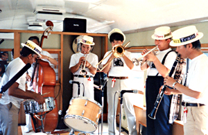 夏の川根路。大井川の清流をぬって全国からのジャズファン、レールファンを乗せたSLがひた走る。大井川鉄道新金谷から千頭まで37.2キロ、約1時間、お座敷列車、展望車を連結した車内では一流ジャズメンによる生演奏。千頭からミニ列車とバスを乗り継いで、奥大井の秘境寸又峡温泉へ。夜は満天の星空の下、野外ステージでの「ジャズフェスティバル」と、旅館大広間でのジャムセッション。奥大井の美しい景観と懐かしいSL列車、それに楽しい音楽という涼しさいっぱいのイベント。