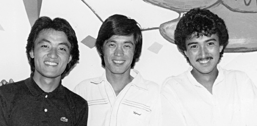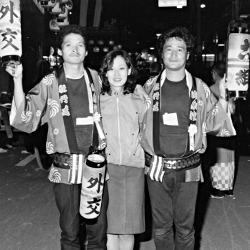 左から甲賀厚樹さん(20才)富部、鈴木和行さん(32才)下垂木、勝谷良幸さん(20才)城北町。この3名は「ひま人同好会」のメンバーなのです。(ところでどんな会なのでせう?)
