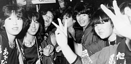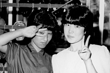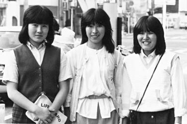 曽根久美子さん(17才)右の成瀬さんと一緒。(1982年8月14日連雀通りの歩行者天国にて)