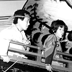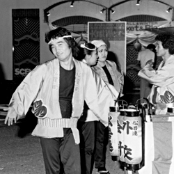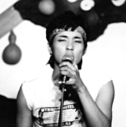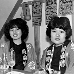 私、高田渡です。今日のコンサートは楽しかったのですが掛川で食べたおでんが非常に印象に残っているんですね。これには驚きました。全国いろいろな所に行ったけど、おでんに「かきこ」がふりかけてあったのはここだけでした。隣は鈴木美枝子さんとその妹さん。