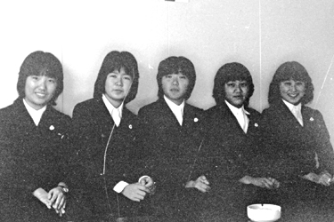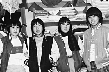78%編集室に遊びに来ました。西高の3年生です。左から松本久美子さん(久美ちゃん)、山口智子さん(ボボボ)、高柳貴美子さん(きみちゃん)、岡田訓子さん(さとちゃん)、藤原久美さん(クーチャン)