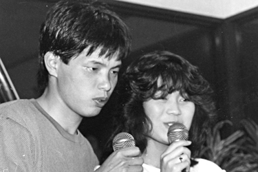 萩田博之さん(19才)カラオケで自分の歌に酔ってしまうという。趣味は?カラオケが好きだっちゅう位。振り付けもするの?乗り出すとね。中年のオッサン相手だもんでほとんど演歌バッカし。みんなそっぽ向いている打門、ガッカリ 。