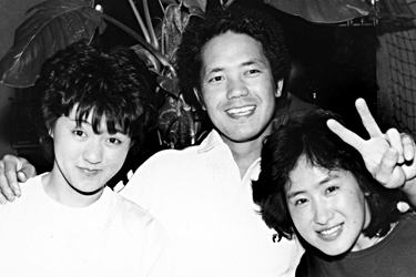 左から藤田恵美子さん(18才)柴田孝由さん(2?才)鈴木直子さん(20才)どうゆう関係なんですか?「そのものずばり三角関係」もめません?{もめませんよ〜父兄同伴って感じでいるから。こう言う機会はうるう年にイッペンですね。」