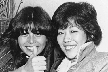 大石真澄さん(藤枝市緑町)と丸山れい子さん(原野谷)は東高の1年生。同じクラス?そう、もっと深い関係だったりしてアハハ。ケンカしたことある?ある、。冷戦状態でねえ、しばらく口きかなかった。一週間くらいだったかな。どこでも一緒?そう、トイレ行く時も 。女子校ってだいたいトイレで話すもんね。中は違うけど…(洒落のつもり)アハハハ。