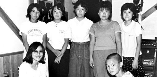 左から二村千恵子さん(16才)高柳ひろみさん(16才)、丸山圭子さん(16才)、栗田洋子さん(16才)バンド組んでます。バンド名はAFFECTIONで〜す。あと一人キーボードがいるけど、部活でいませ〜ん。全員掛川東高です。学校は最高に面白いョ!(ウッソーの声)大好きな先生はオオエセンセー!これ本当に載るの?!