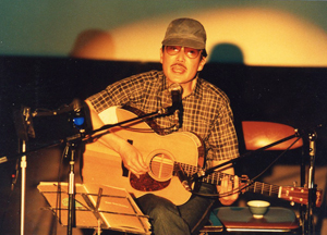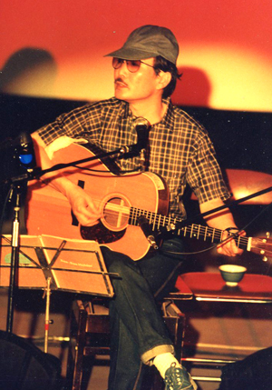 さて、このアルバムにはもうひとつのスタイル、ギターによる弾き語りが何曲か収められています。’84から開始した、ギター1本だけのコンサートツアーで200ヶ所以上の旅をし、弾き語りの良さを再確認した僕ですが、どちらのスタイルからも電気楽器を多用した今流行(はやり)の歌にはない「生身の鼓動」といったものを感じていただけるものと確信しております。