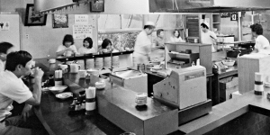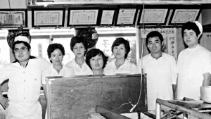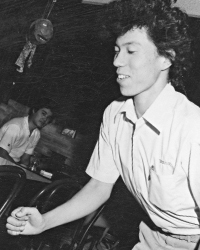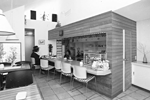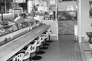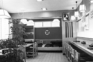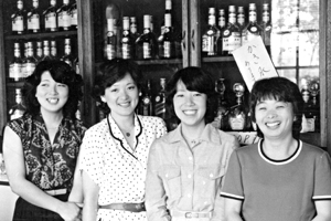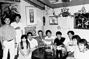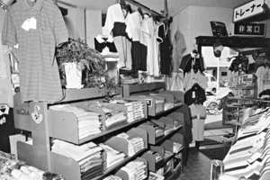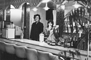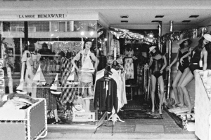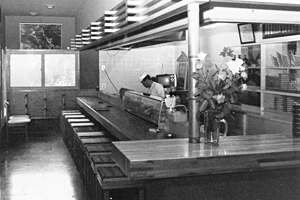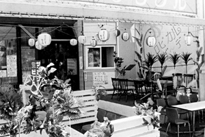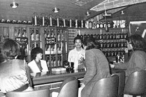 吹き抜けの天井がいい雰囲気をかもしだしている。梁にはサーフボードがおいてありサーフィンの好きなマスターの趣味が生かされている。なんとなく「自然に若者が集まってくる」テルミーはそんなお店です。ちょっと煙草を…。灰皿は?あれ、あれ、なんと店の建物を型どった手作りの焼き物の灰皿。これはいい、と持ち上げたらなんと上下に分かれているではないか。この灰皿は桜木の山奥の陶房「土ぼけ」で制作されたものでした。テルミーのおすすめドリンクは、ブラジル産のオレンジと牛乳でシェイクした「ファッション・シェイク」一杯¥300です。(お店スポット1980.5)