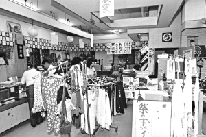 衣料品店イシバシヤの社長は55年間この道一筋一代で築き上げた。衣料品に関しては業界の生産工程や仕入れなど裏表を知り尽くしているので仕入れも確か。「お客さんも信用してくれているので変なものは販売できない」と信用とサービスをモットーに一環した商法を貫いている。学生衣料、お祭り用品、贈答品を主体に子供服、寝具、下着などを販売。お祭り用品はどんな物でも間に合わせてくれるので遠州一円からお客さんが来る。親子2代で祭り好きで、様々な祭りに精通しているので、祭りに関してはいろいろな相談にのってくれる。(お店スポット1980.10)