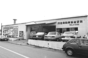 山水電気の側にある川佳自動車板金塗装。「塗装は装飾だけでなく錆、腐食を譲る大切なボディガードです。」と語るご主人。古い車でも全塗装をすれば見違えるほどきれいになるし、デコボコのキズだらけの車が元に戻った時の快感はえも言われぬもの。板金塗装も低価格につられると、それだけのものになってしまい後悔するが、価格だけでなく信頼のおける業者かどうか確かめて頼むのが一番。カワヨシでは、耐候性、再補修性にも優れたアクリルウレタン系の塗料を使っているので高品質の塗膜が可能。そしてアフターサービスも完璧なので安心。(お店スポット1980.10)