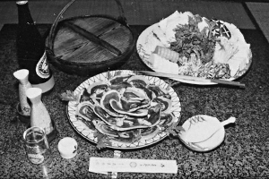 灘自慢のおすすめメニューは「どてやき」モツを赤味噌でグツグツと時間を掛けて煮込みあげたもの。味はあっさりしていて長ネギとの調和がうまくとれている。一皿250円。それから「おでん」も始まったので、これからの季節、どてやきやおでんをつまみながら一杯飲むのは酒飲みにとっては堪えられない満足感が味わえる。酒は剣菱、ビールはキリン。席数はカウンターが11席、お座敷12名位と奥の座敷に6〜7名が座れるようになっていて、ちょっとした宴会が出来る。(お店スポット1980.10)