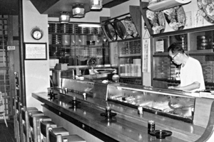 「ランチタイムサービス実施中」ラーメンをお召し上がりの方に限り、お昼のご飯が無料になります。麦・栗・さつまご飯とライスメニューが毎日替わります。 (広告1980.10)