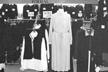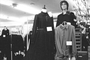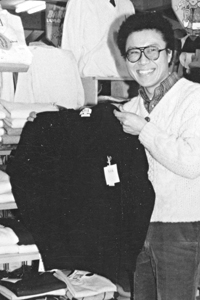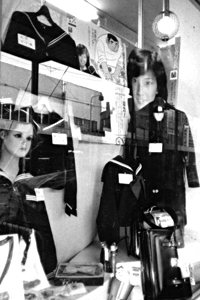 いよいよ新入学の季節。今は新しい学校に入る不安と期待で胸がいっぱいといったところかな?入学式では新しい顔、顔…。不安なのです。でも早くいい友を見つけて早く学校に慣れること。なんでも打ち明けられる友がいれば、学校もまた楽しいもの。ところで、もう新しい学校の制服の準備はすんだかな?制服を揃える時には、出来るだけ上なら上だけ、下なら下だけを買い替えられるものを揃えた方が得。イシバシヤで扱っているセーラー服は、全ての商品の生地をニッケの640番で統一しているので、たとえば中学から高校になっても上着だけ替えてスカートをそのままはいて行けるので経済的。学生服は太陽桜とトンボ、スクールタイガーのメーカーを扱っている。イシバシヤでは、掛川市内の幼稚園から高校までの指定の体操シャツから制服はすべて揃えてある。「正しい形、良い仕立て、よい生地」の制服で君も新一年生。 (お店スポット1981.3)