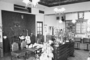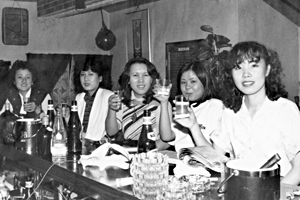 これから歓送迎会のシーズン。滝本館新館で「ゆったり、ゆっくり」と宴会をお楽しみ下さい。マイクロバスでお迎えに上がります。 (広告1980.9)