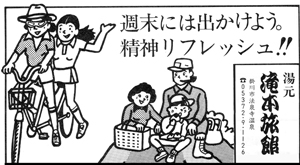 今年の忘・新年会には普段食べていないシシ鍋は如何ですか。猪の肉はクセがあると思いがちだが、滝本館ででるものは新鮮で美味しい最高の猪肉。コースはシシ鍋の他にスキヤキコースもあり、1名様日帰りで¥4,000から、1泊コースで¥7,100よりある。78%の滝本旅館の広告についている記念品交換券を持っていけば、帰りにはお土産がついてくる。最高の忘・新年会になりそうだ。