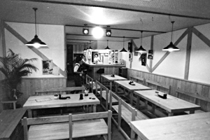 いよいよ食欲の秋本番。林檎館では喫茶、パブに加えて、フレンチが得意のマスターが腕によりをかけて美味しい料理を作ってくれるパーティの時には予約しておけば、和洋中を取り混ぜて美味しい料理を披露してもらえる。また、夜8時まで(名付けてジョイフルタイム)は、ミネラルと氷のセットが¥200,水割りやワインが各¥300、VSOP、カクテルは各¥400と割引になっている。夜8時前に出かけて飲みまくろう!なお、ビールと日本酒以外ならアルコールは持込自由だそうです。欧風式のシックな建物が目印。
