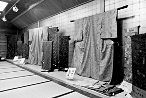普段ジーパンをはいている女性がたまに着物を着るとまわりから注目を集める。しかし、着物を粋に着こなすにはまず着物を知る事が第一歩。種類は加賀友禅、久留米絣、大島紬、結城紬、紅型、と土地柄によって織り方や染め方も様々。桝忠では2階展示場に毎月一回全国の着物を展示している。10月には「更紗展」を開催。更紗は洋装やインテリアの分野でも使われているが、ろうを用いた手描き染めの本場のジャワ更紗の生地で着物に仕立てると洋装感覚で着られる。 (お店スポット1981.11) |