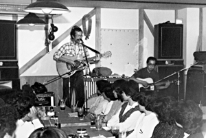ライブハウスって何?と言う人がまだいるんです。そこでちょっと解説を。ひょうたん島の場合、昼は喫茶と食事。夜はそれにお酒が加わってワイワイガヤガヤ。そしてJBLスピーカーから流れる音楽は、ロック、フォーク、ジャズ、ブルース。月に3〜4回のプロやアマチュアバンドによるライブ。年2〜3回の自主上映、うたごえなど多彩なイベントを企画しています。