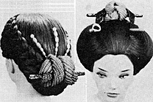 お正月は女性の晴れ着姿を見ないことには気分が出ませんね。あの日本髪は独特な雰囲気があります。ですから髪の長い人はぜひ日本髪を結って欲しいのです。今年の新日本髪の特徴は編み込みを入れたものが多く、可愛らしさとナウっぽさの両面を持ち合わせているのです。極端に入れず控えめにどこか1箇所に使うと最高に際立ちます。写真左は、頭のてっぺんに編み込みが入っています。リリー美容院なら、あなたに合ったヘアースタイルを考えてくれます。