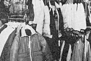 これからはウインタースポーツの真っ盛り。ダウンジャケットをはじめ、タウンベスト、ウィンドブレーカー、革ジャンなど紳士婦人、子ども用と家族全員の冬の衣料が揃ってしまう。他にもマフラーや手袋、パイルソックスバルキータイツ、ホットレシーバーなどの小物も揃えています。これなら雪見遠足も安心。たとえ部屋の中に雪が降ろうが槍が降ろうが、ち〜いとも寒くないのであります、寒さなんかノックアウト!