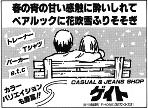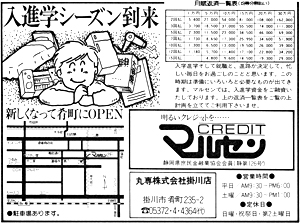 | 78%KAKEGAWAのスポンサーになって頂いたお店や会社の紹介です。 「広告」や「お店スポット」「新会員の紹介」「掛川を食べる!うまい話し」「おいしい喫茶店」などのコーナーでご紹介致しました。(現在存在しない店舗・会社等があります。また掲載写真は当時の写真が見つからない場合、当時の他の写真に差し替えました。) |