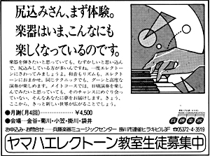 楽器を弾きたいと思っていても、むずかしいと思い込んでて尻込みしている方が多いんですね。一度エレクトーンにさわってみましょう。和音もリズムもエレクトーンにおまかせ。同じテクニックでも、ぐーんと高度な演奏が楽しめます。メイトコースでは、日頃演奏を楽しんでみたいと思っていてもそのチャンスにめぐり会っていまい、そんなあなたに夢をお届けします。きょう、ここから、きっと新しい世界が広がることでしょう。