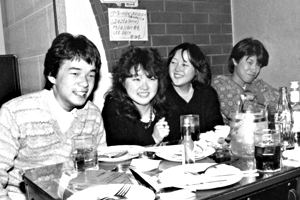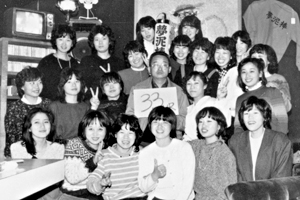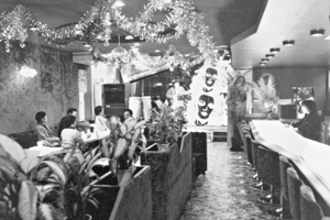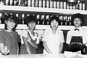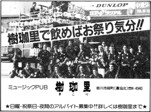 今年の12月で5周年を迎える。店内はごくフツーのスナックという感じでごくフツーのつまみと、ボトルもオールド、カティサーク、21と一般的なもの。それなのに夜の9時を過ぎる頃から、店内はにわかに賑やかさを増し、20才位の若い人から年配者までの巾広い層がが集まって来てワイワイガヤガヤと一様に秋の夜長を楽しんでいる。賑やかな雰囲気が好きな人にはもってこいのお店。ビデオカラオケも完備。そして、毎年赤と黒のオリジナルTシャツやトレーナーを作っていて人気を呼んでいます。