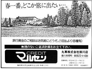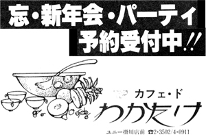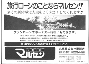 | 78%KAKEGAWAのスポンサーになって頂いたお店や会社の紹介です。 「広告」や「お店スポット」「新会員の紹介」「掛川を食べる!うまい話し」「おいしい喫茶店」などのコーナーでご紹介致しました一部の広告です。(現在存在しない店舗・会社等があります。また掲載写真は当時の写真が見つからない場合、当時の他の写真に差し替えました。) |