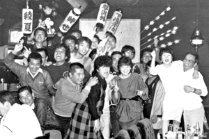 今年の2月11日で2周年を迎えた辰巳は、菊川病院のすぐ近くにある。昼はお食事処、夜は大衆酒場として、気軽に入れる店である。昼の辰巳弁当、幕の内弁当は研究熱心なママの手作り弁当として好評だ。「夜も女性や家族連れで気軽に来てもらえるよう、つまみに主流をおいています。」という。常時あるのが30〜40品で¥300〜¥400。他にも気まぐれメニューがあり、レパートリーは80品目ぐらいあると言う。中でも辰巳コロッケ、いかの塩辛などが人気。とうふステーキ、揚げ出し豆腐、田楽、豆腐のフライなど、豆腐料理も豊富である。飲み物はお客さんの好みで仕入れるので、頼めばどんなものでもキープ出来るし、最近見直されてきた焼酎もおいてある。