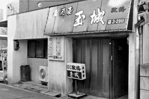 研屋町にある「玉城」は、10席ほどのカウンターがあるだけの居酒屋風。ひざつき合わせて一杯飲めば、いつの間にかお隣さん同志で意気投合という雰囲気で気取らず気軽に飲めます。メニューは煮物、焼き物、刺身などで、その日の気分で材料を仕入れてくるため、日替わりメニューが楽しめます。ただし、レバ刺しだけはほとんど一年中あるとのこと。一番の人気メニューはジャガイモのバター炒め(¥500)。一度オーダーした人は二度目に来たときも必ずオーダーするそうです。ボトルキープ(サントリー21)¥3,900は、10本ごとに¥100づつ安くなり最終的には¥3,500の割引料金になります。