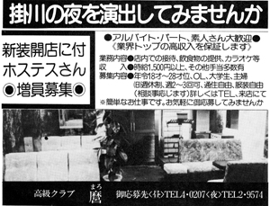 新装開店に付きホステスさん増員募集!