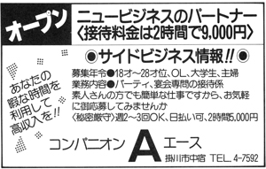 ニュービジネスのパートナー)接待料金は2時間で9,000円