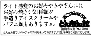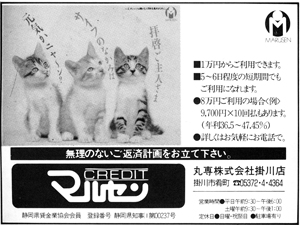 78%KAKEGAWAのスポンサーになって頂いたお店や会社の紹介です。 「広告」や「お店スポット」「新会員の紹介」「掛川を食べる!うまい話し」「おいしい喫茶店」などのコーナーでご紹介致しました一部の広告です。(現在存在しない店舗・会社等があります。また掲載写真は当時の写真が見つからない場合、当時の他の写真に差し替えました。)