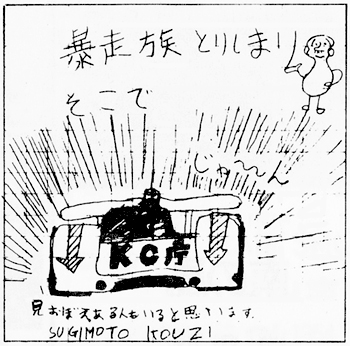ぼくは5月号にのせてもらった杉本浩二です。大変かんげきですが、親にはないしょで(ムムッ)だしたのでみせられません。ところでですが、夕ニャンみている人いるかなあ。あれでオリコンという会社を聞いて、10月号のサークルレポートを思い出した。ところがざん念。“オリハルコン”ではないか!(別におこることはない)ちなみに、夕ニャンたるべきものはほとんどみない。これは倉真小の6年生全員に言っておきたいこと。もっと書きたいことあったんだけれど忘れてしもーたのでやめます。PS、5月号の11Pの方、おだいじに。