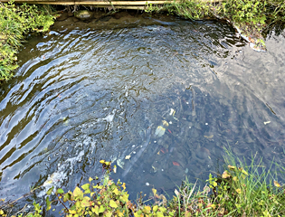 を年数回重機で取り除いている。一回でバケット(100L)が水を含めて10杯位だから年間では泥などは0.5トン以上はある勘定になる。その堆積物には小石、砂礫や粘土状の土や土より粗いシルト、腐葉、分解途中の葉などや植物の多くの種などが混じっていて単なる土とは違い、とても粒度が良くにぎやかな堆積土だ。しかし、毎年浚渫(しゅんせつ)していると土の置き場に困ってくる。池周りは満杯。側溝の向こう側も山のようになってしまった。流れが悪かったのでよく見ると排水のパイプが破損している。たぶんバケットがぶつかったのだろう。この機会に使っていない池を埋め立てることにした。水が入るパイプを塞ぐ蓋が来てから作業を行うなう予定でいる。(パイプ径は150ミリ)
